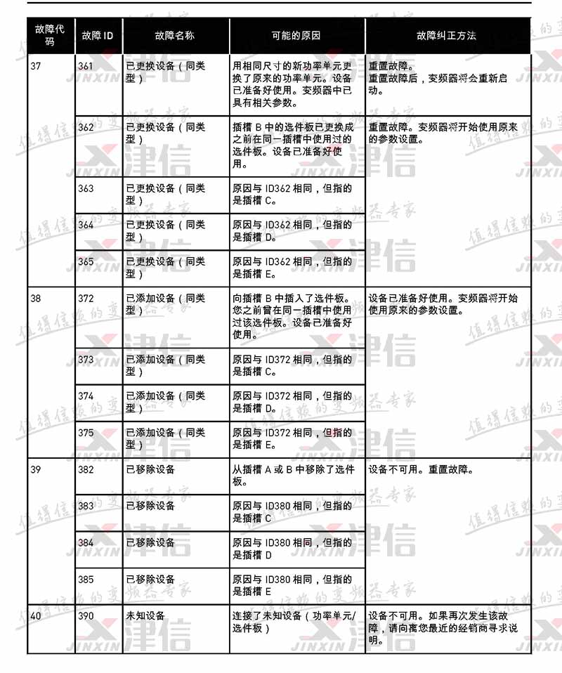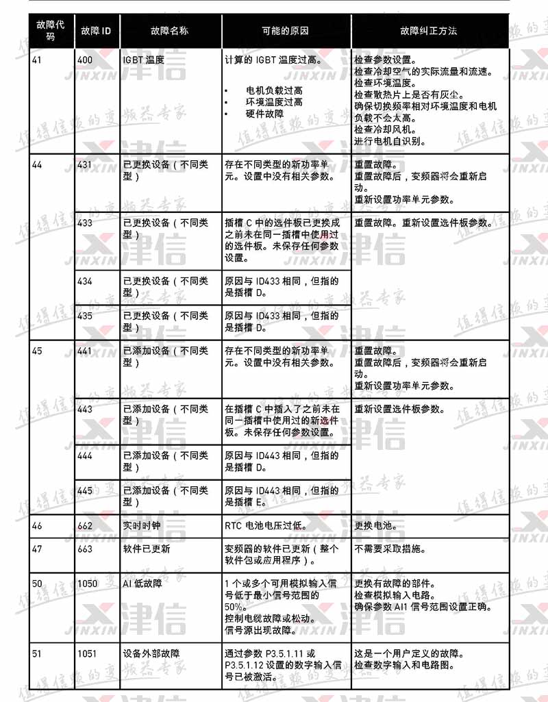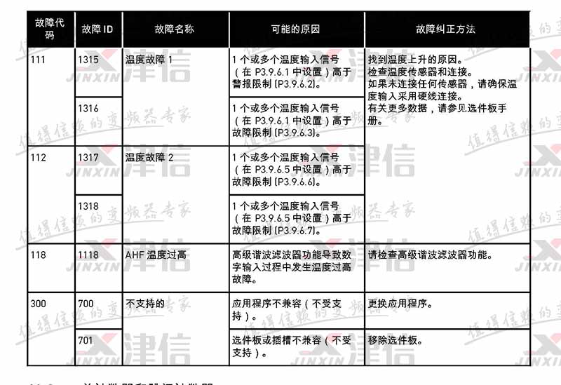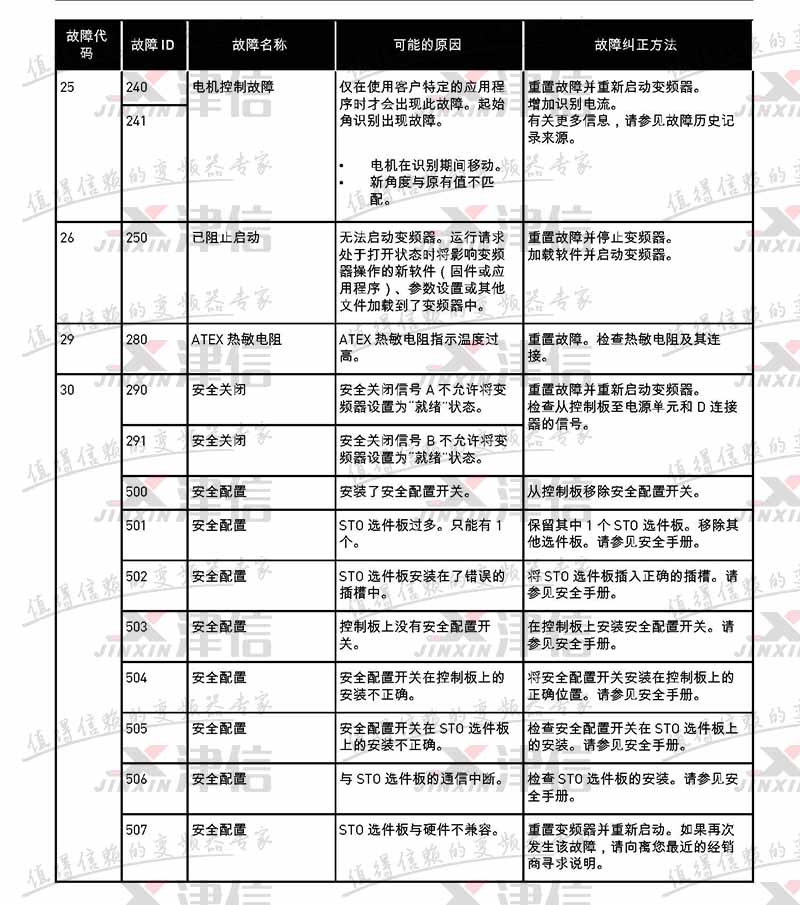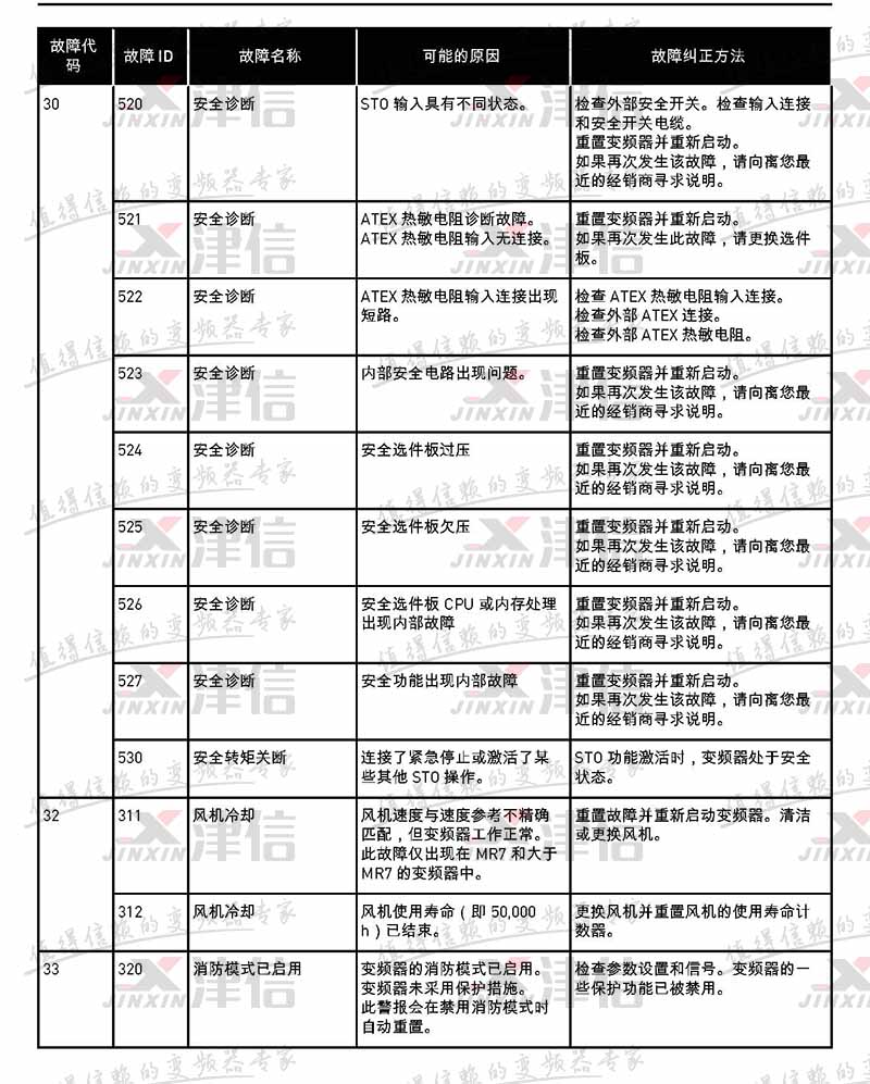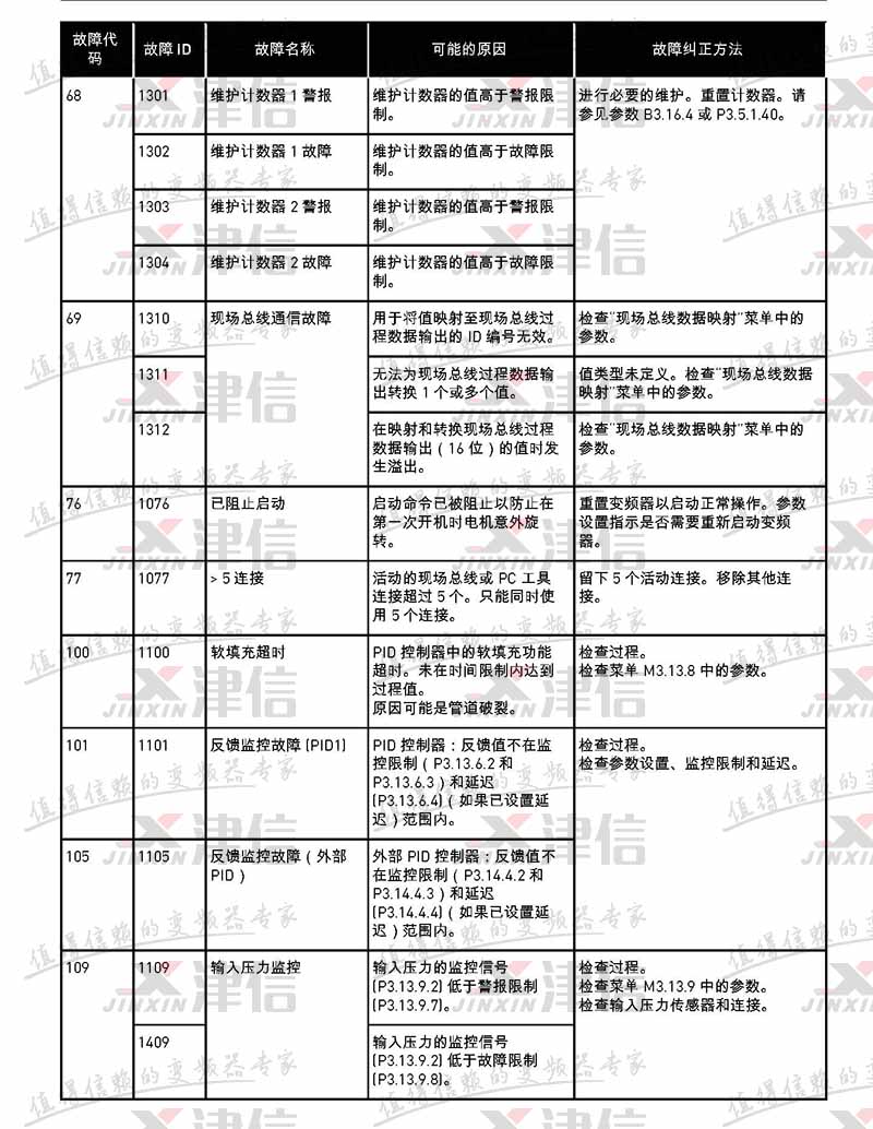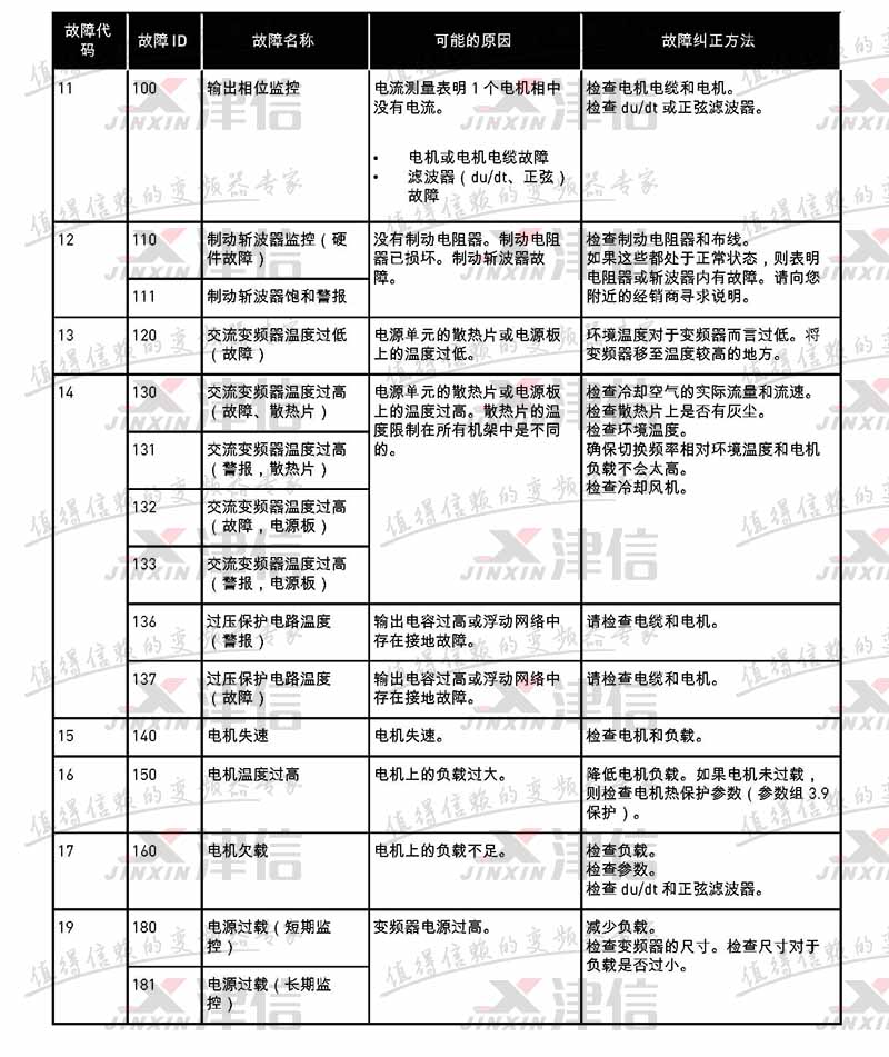 | 故障代碼 | 故障 ID | 故障名稱(chēng) | 可能的原因 | 故障糾正方法 |