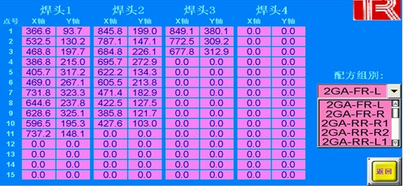 因設(shè)備所焊接的門板多達十幾種,而每個門板的焊接孔位置是不一樣的,所以需要使用配方功能,來實現(xiàn)同一臺設(shè)備焊接不同門板。設(shè)備配方所包含的功能如下: